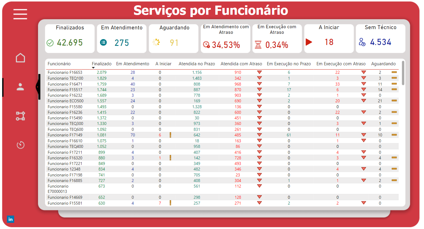 Dashboard Realização de Serviços